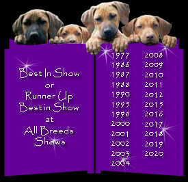 I would like to thank the many people in various countries who have purchased and shown Chilolo Ridgebacks over the past 30 plus years and who have provided my dogs with such good homes. Without your support, the above record would not have been achieved. My sincere thanks to you all.
