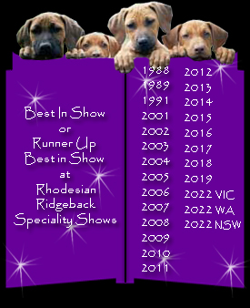To the best of our knowledge, no other Rhodesian Ridgeback breeder in Australia has achieved such consistent results over such a long period of time. Please take some time to look at our gorgeous past and present RRs on the following pages and feel free to contact us anytime.