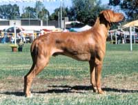 Bandit is the first liver nosed RR we had bred.  He was a wonderfully gentle nature and is always the perfect gentleman.  With his great front construction and strong hindquarters, he powers round the ring and on 26 March 2005, as an 8 year old, he proved he can still mix it with the best when he was awarded Reserve Challenge Dog and Runner Up Best in Show at the RR Specialty held at Newcastle.  He was beaten only by his grandson Aust Ch Zimbalooba Boom Man.