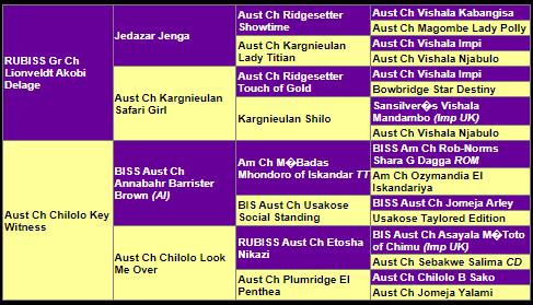 His progeny include the elegant liver bitch Aust Ch Zimbalooba Steffi Graf  (Zarli) who is the mother of Aust Ch Zimbalooba Boom Man.  Zarli was Baby Puppy in Show at the 2000 National Show in Canberra.  Bandit's progeny have also performed well in the show ring in Sweden where they were handled by John Berg.