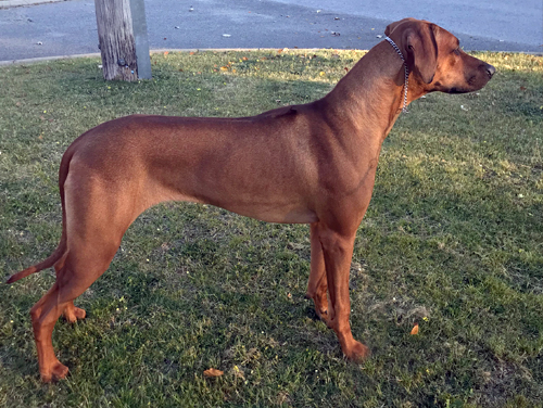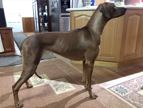 Name: Chilolo HH Spin It In Gold Call Name: Eva DOB: 19 Dec 2018 Height: 66cm (26ins) Weight: 36kgs Hips: Elbows: Not a carrier of DM or JME Eva is another classicly beautiful bitch from our Herc and Holly litter. She is a full sister to Yinka and Tuku and I had a difficult time choosing which one to keep! Eva lives with Tanya in Perth and has had moderate success in the show ring.