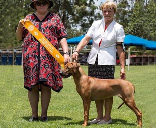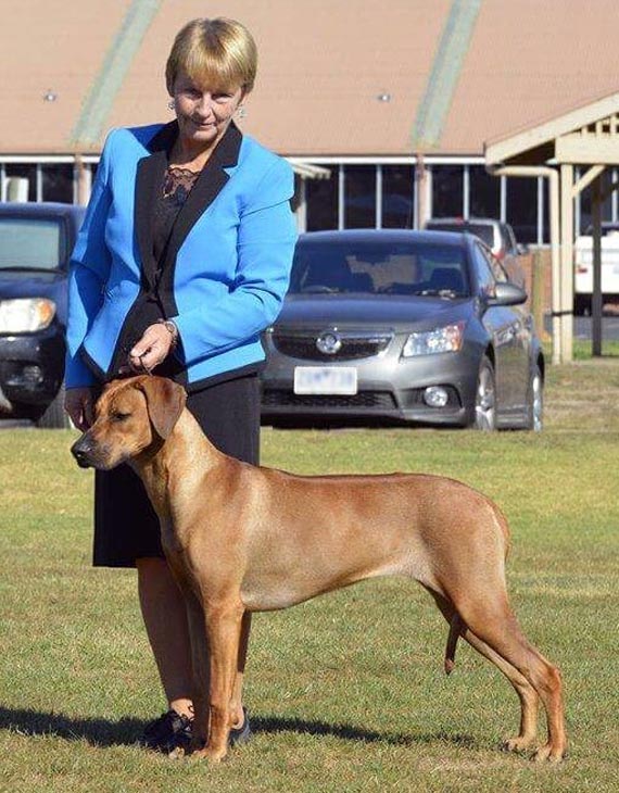 Holly is a sweetheart.  She was born 28 June 2016 and is shown occasionally but has done extremely well. She is so amenable and easy to handle and lives with Jenny and Don and Maggie, a bull mastiff cross, on their thoroughbred farm not far from us.  Maggie and Holly are the best of friends!