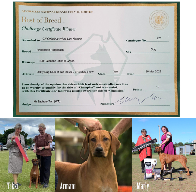 Saturday morning under world renowned international judge from Canada Mr Richard Paquette, Caelum was Best of Breed, Ren was Challenge Bitch, Goldie was Reserve Challenge and Best Australian Bred in Group.