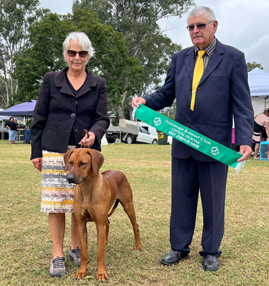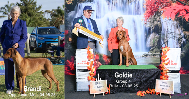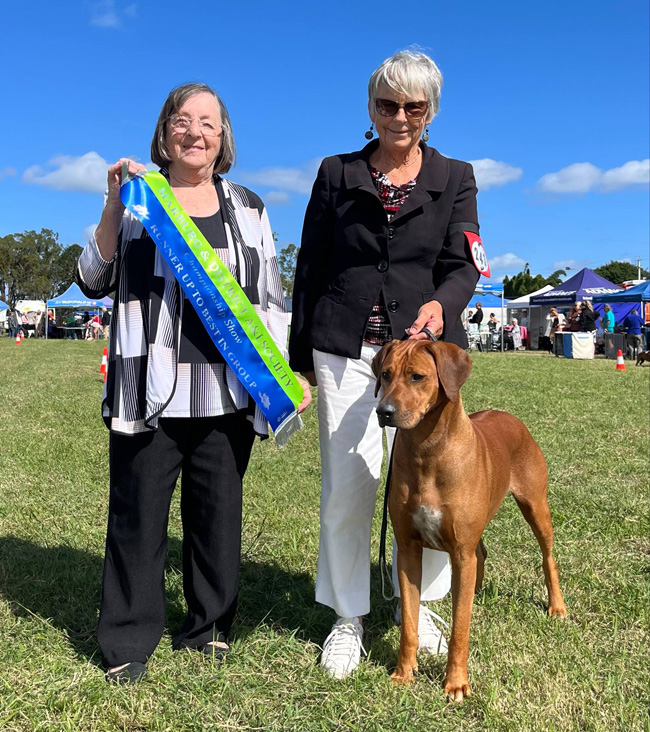 Next day a 6 hour drive to our motel at Gisborne for the Bulla Extravaganza shows. Our dogs all travelled so well and especially the 2 young ones, Mustard and Brandi. Ridgebacks came from WA, SA, Qld, NSW and Victoria and I am absolutely thrilled with the following results: