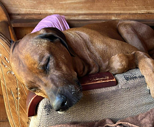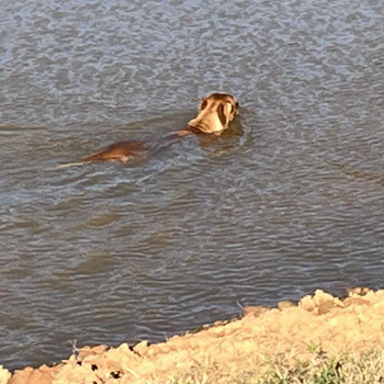 Joey lives with us and, believe it or not, he is an excellent hunter and finds quail, ducks and hares by using his excellent sense of smell but despite his talent as a hunter, he is more than happy to while away the house on the couch!