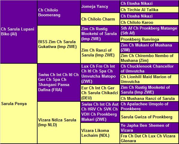 Tessa's grandfather is the very well performed Multi National Champion Shangani Pansa Dafina who lived in Europe and we are lucky to have his blood line here in Australia.